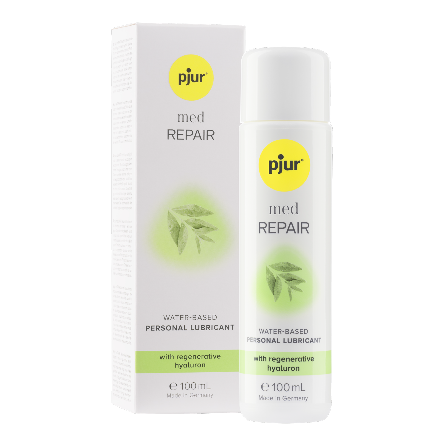 The water-based personal lubricant pjur med REPAIR contains hyaluron for long-lasting lubrication. Hyaluron is able to bind large amounts of water, creating small cushions of water that significantly boost the product’s lubricating effect. Hyaluron helps the skin effectively regenerate. This water-based personal lubricant is therefore ideal for dry and stressed skin in the genital area.